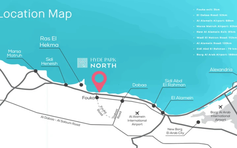 - مطار العلمين: من الان يمكنك استقبال جميع زائرينك، وهذا لأن المسافة الفاصلة 68 كيلو متر.
